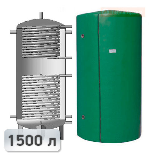 Акумулююча ємність із двома теплообмінниками із нержавіючої та чорної сталі KHT ЕАІ-11-1500-X/Y без ізоляції