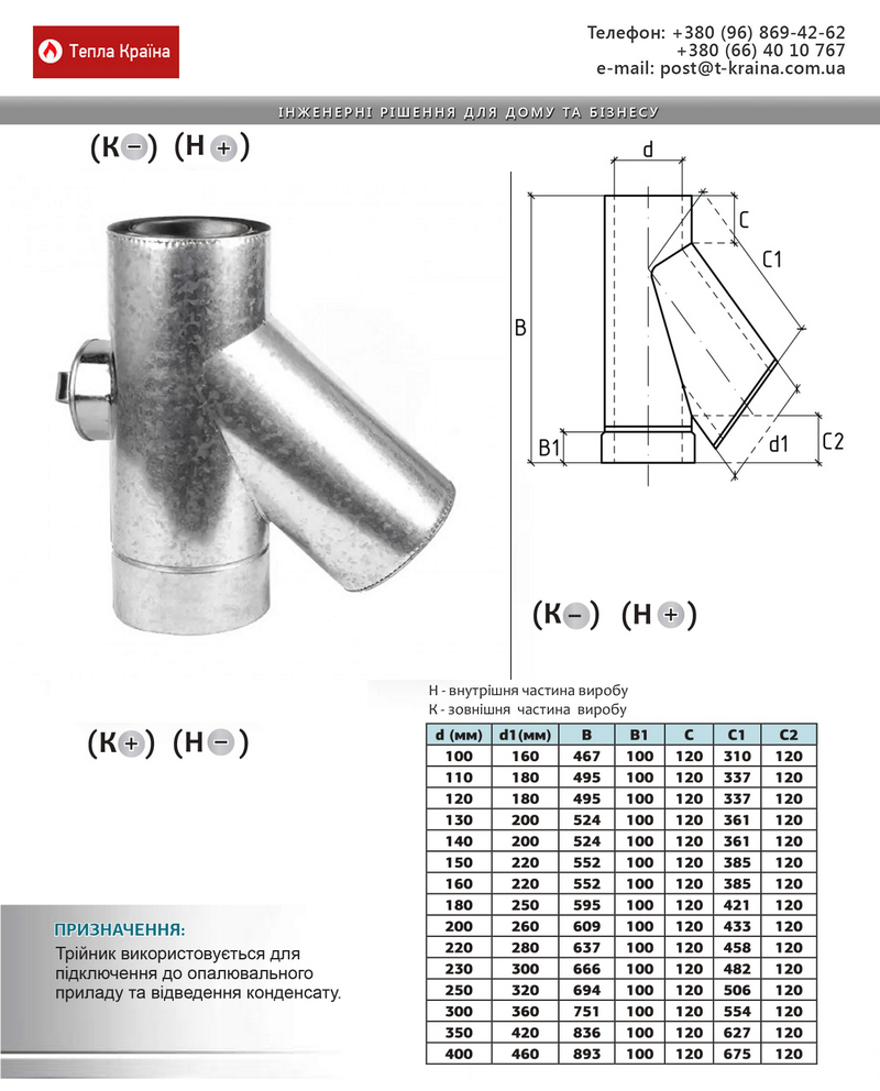 Трійник -виготовляється з кутами 45°, 87°, використовується для з'єднання вертикальної і горизонтальної ліній димовідвідних та вентиляційних систем.