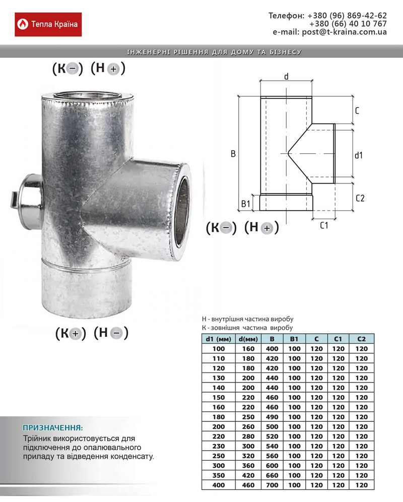 Ревізія у трійнику служить для забезпечення можливості контрольного доступу і обслуговування димаря. У комплекті заглушка з ручкою і лійка.