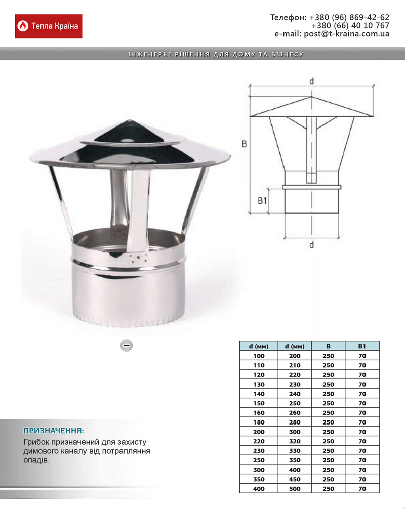 Грибок термо -призначений для захисту димового каналу від опадів. Використовується без застосування конуса термо.
