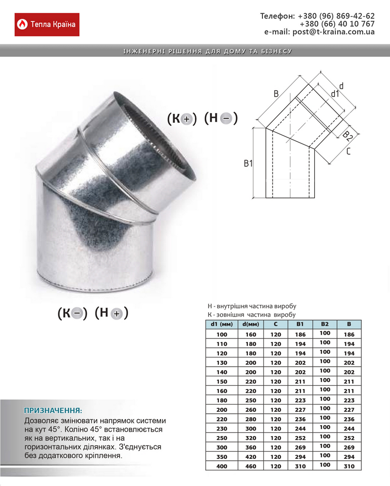Перехід -для з'єднання димаря різного діаметра. Форма перехіда буває: коло - коло, коло - квадрат, коло - прямокутник, коло - овал і т.д.