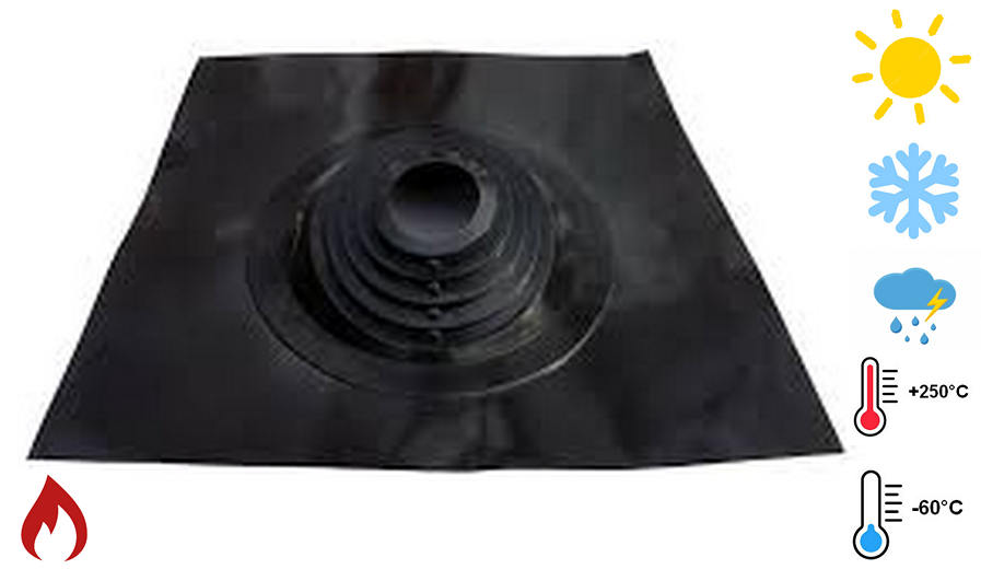 Майстер Флеш – покрівельна ущільнювальна манжета, що має високу еластичність. Є простим рішенням для герметизації проходу димоходу через покрівлю, при цьому забезпечує максимальне прилягання манжети до покрівлі, виключаючи протікання. Основне застосування майстер флешу (покрівельної манжети) явл. герметизація проходу димової труби через покрівлю. В залежності від кута покрівлі та різноманітності матеріалів для покриття дахів можна підібрати ущільнювальну манжету для Вашої покрівлі. Манжета – ступінчаста піраміда із заготовленими діаметрами (не потрібні діаметри відрізається) під діаметр Вашої труби. Також враховується нахил даху, тому манжети бувають: